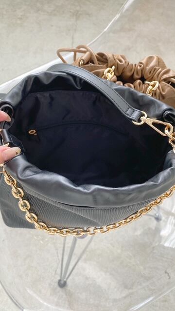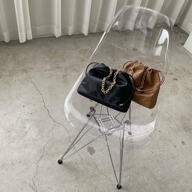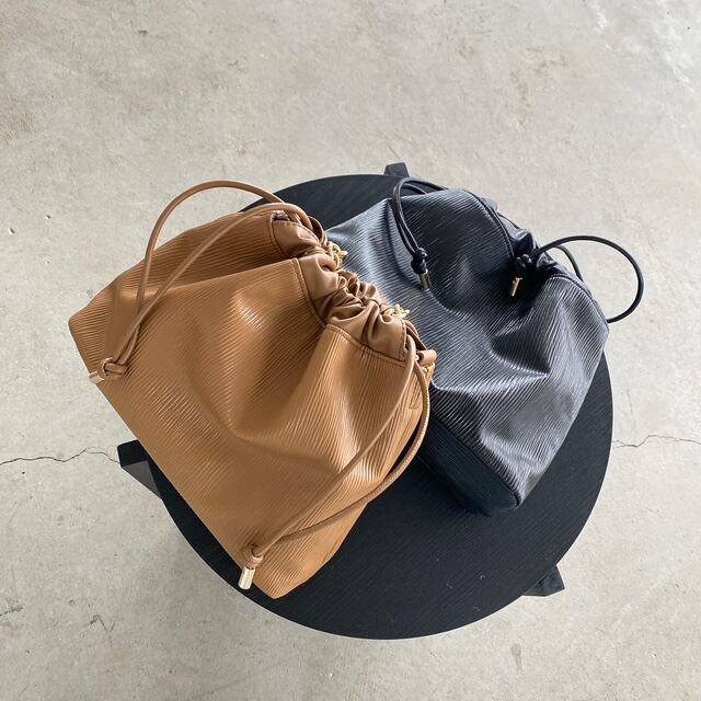 高級感のある程良く艶のある型押し合皮が魅力の巾着バッグ