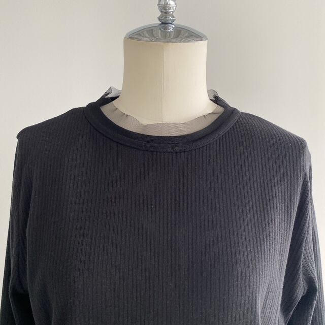 首元と袖を同色のチュールレイヤード切り替えにして