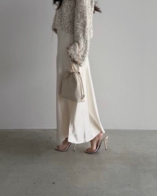 ワードローブにあると頼れるサテンスカートです。