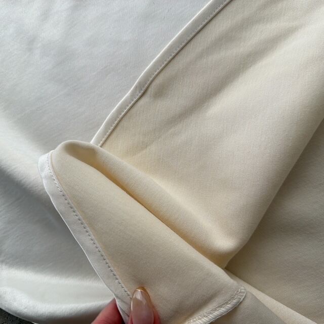 ホワイトですが透け感が気になりにくい生地を使用し、上品さと扱いやすさを両立。